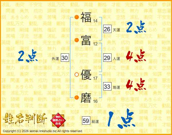 福富優磨さんの天運は26画の2点!