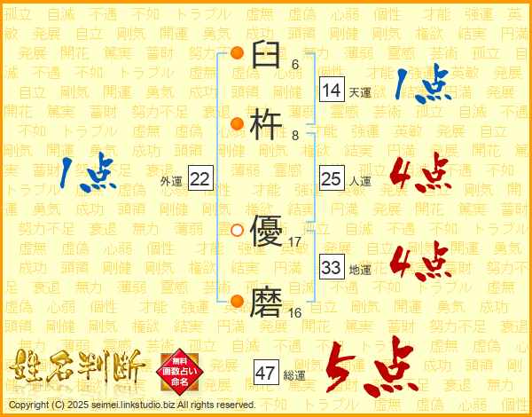 臼杵優磨さんの総運は47画の5点!