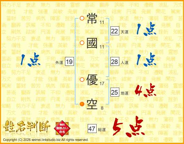 常國優空さんの地運は25画の4点!
