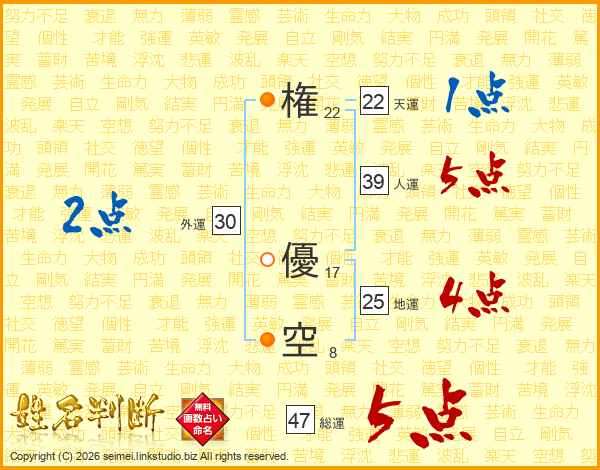 権優空さんの総運は47画の5点!