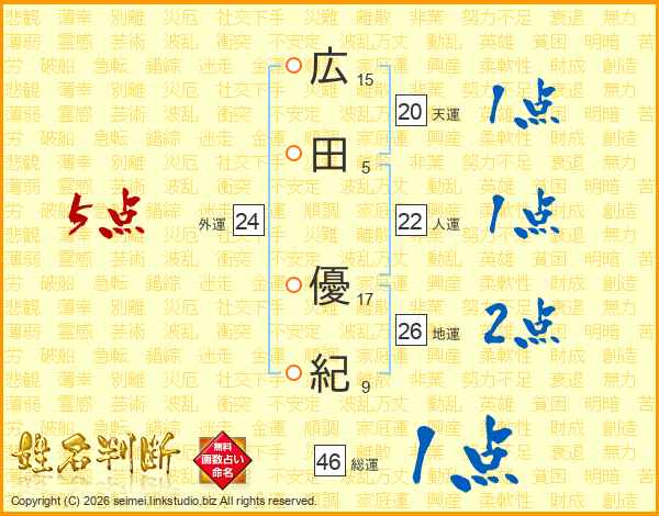 広田優紀さんの総運は46画の1点!