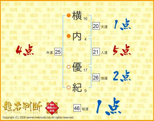 横内優紀さんの地運は26画の2点!