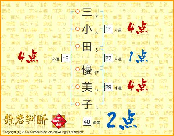 三小田優美子さんの総運は40画の2点!