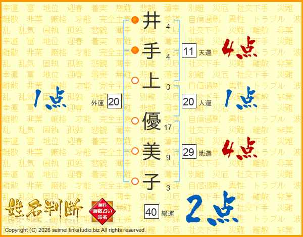 井手上優美子さんの総運は40画の2点!