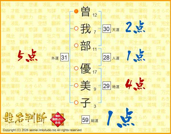 曽我部優美子さんの外運は31画の5点!