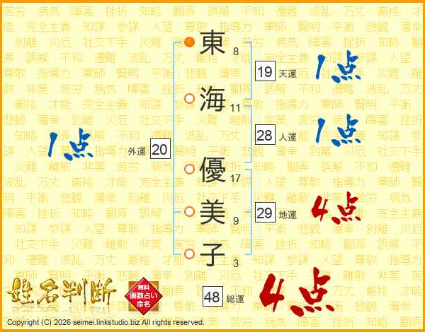 東海優美子さんの総運は48画の4点!