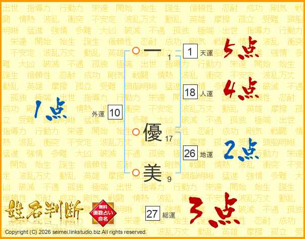 一(1画) 優(17画)美(9画)