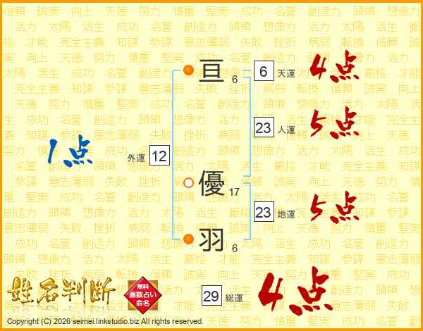 亘優羽さんの総運は29画の4点!