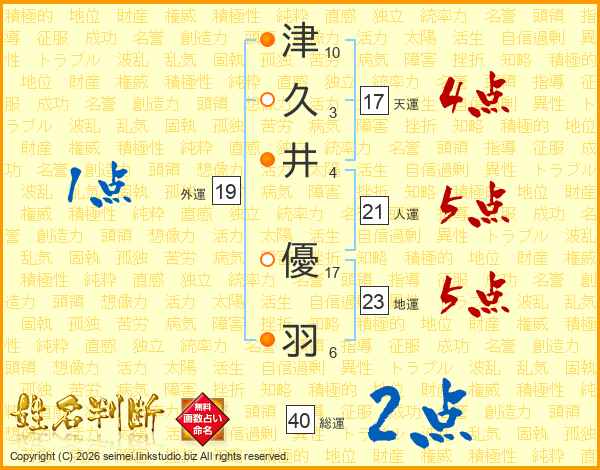 津久井優羽さんの天運は17画の4点!