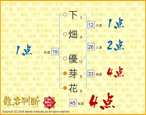 下畑優芽花さんの総運は45画の4点!