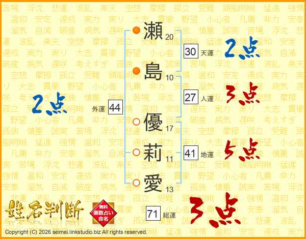 瀬島優莉愛さんの外運は44画の2点!