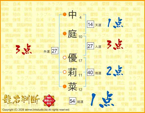 中庭優莉菜さんの総運は54画の1点!