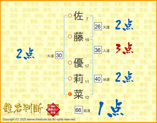 佐藤優莉菜さんの総運は66画の1点!