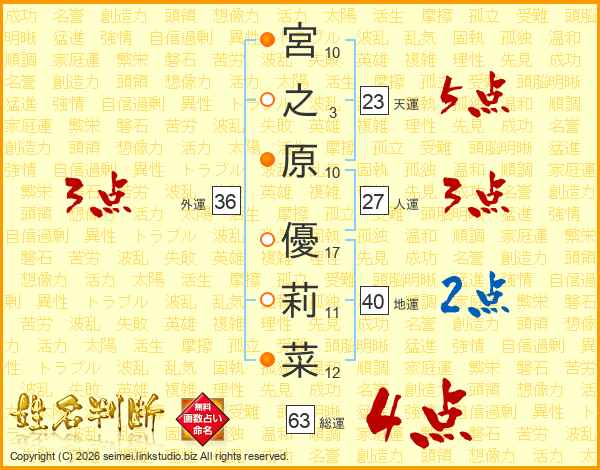 宮之原優莉菜さんの総運は63画の4点!