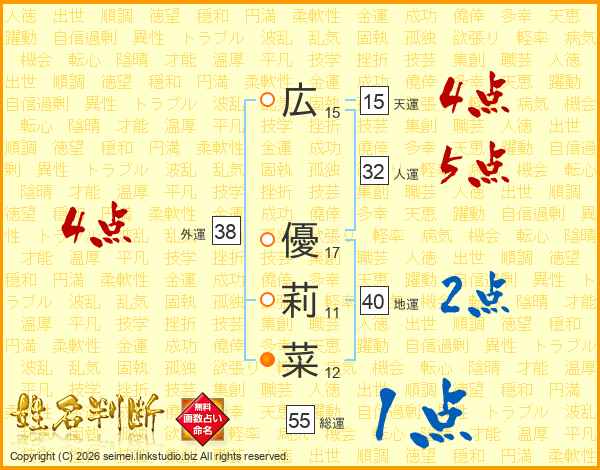 広優莉菜さんの外運は38画の4点!