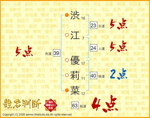渋江優莉菜さんの人運は24画の5点!