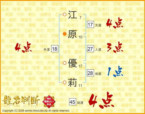 江原優莉さんの総運は45画の4点!