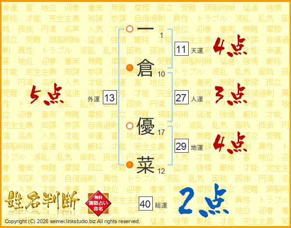 一倉優菜さんの総運は40画の2点!