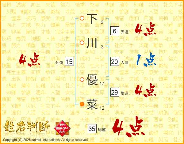 下川優菜さんの総運は35画の4点!