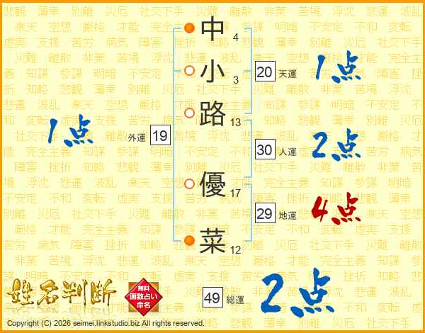 中小路優菜さんの人運は30画の2点!