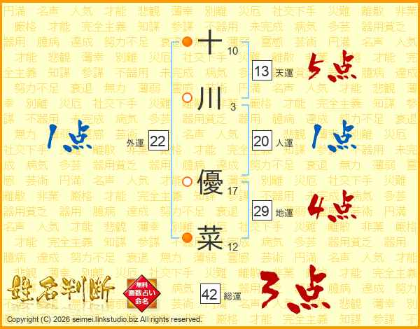 十川優菜さんの天運は13画の5点!