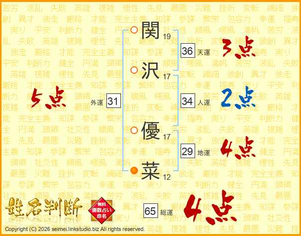 関沢優菜さんの総運は65画の4点!