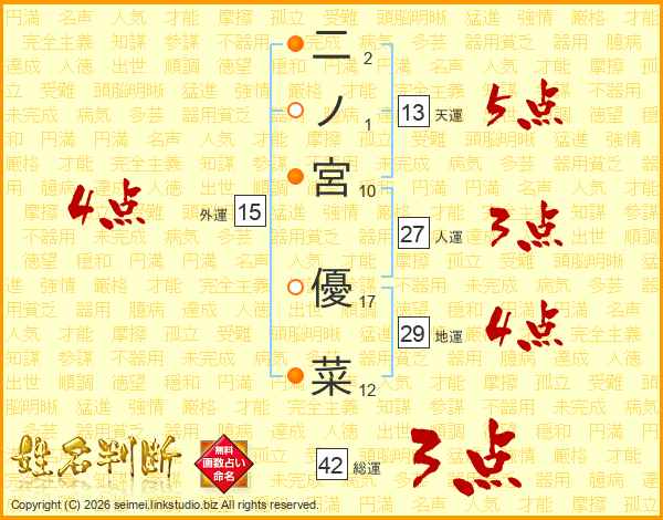 二ノ宮優菜さんの外運は15画の4点!