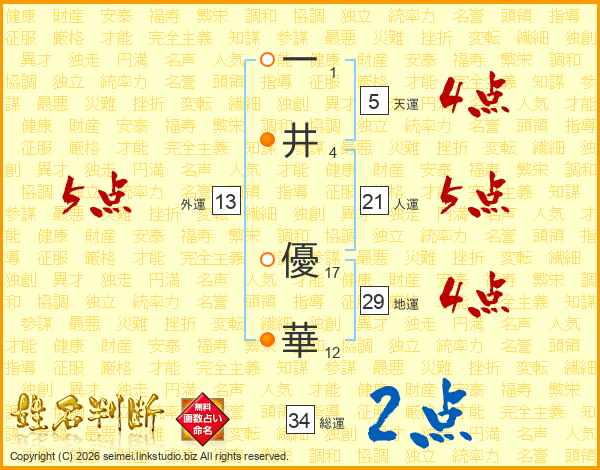 一(1画)井(4画) 優(17画)華(12画)
