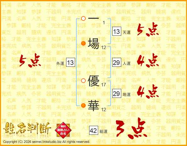 一場優華さんの天運は13画の5点!