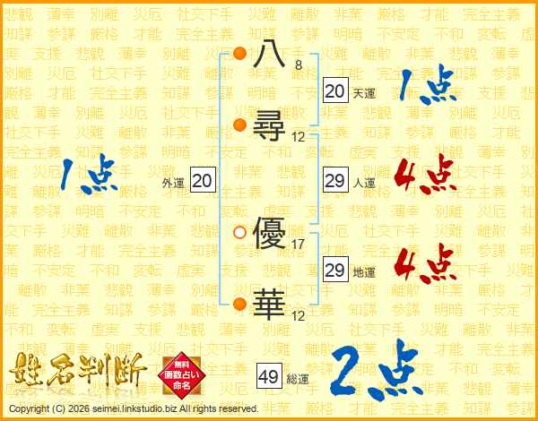 八尋優華さんの総運は49画の2点!