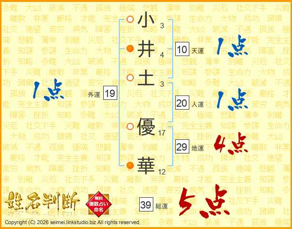 小(3画)井(4画)土(3画) 優(17画)華(12画)