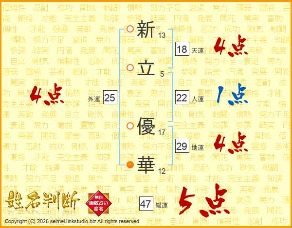 新立優華さんの総運は47画の5点!