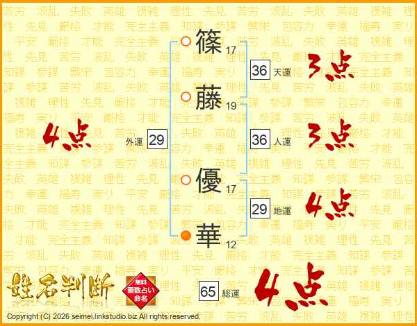 篠(17画)藤(19画) 優(17画)華(12画)