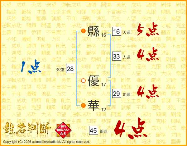 縣優華さんの人運は33画の4点!