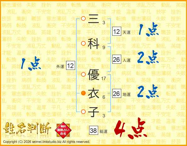 三科優衣子さんの総運は38画の4点!