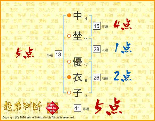 中埜優衣子さんの総運は41画の5点!