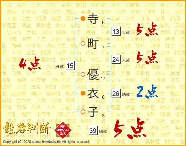 寺(6画)町(7画) 優(17画)衣(6画)子(3画)