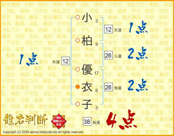 小柏優衣子さんの総運は38画の4点!