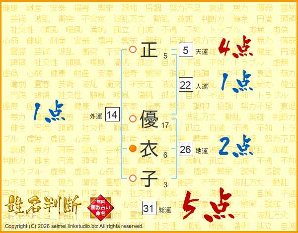 正優衣子さんの総運は31画の5点!