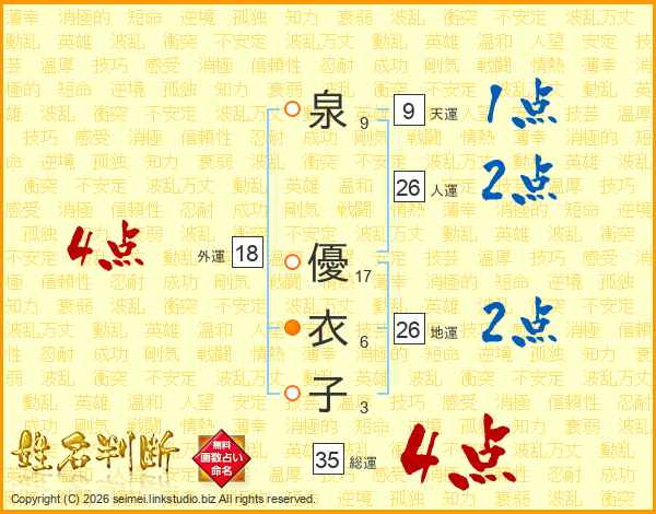 泉優衣子さんの人運は26画の2点!