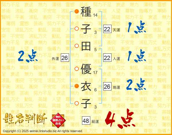 種子田優衣子さんの総運は48画の4点!