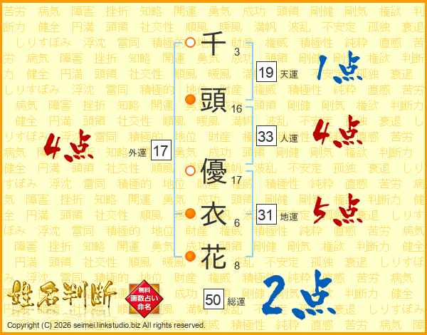 千頭優衣花さんの人運は33画の4点!