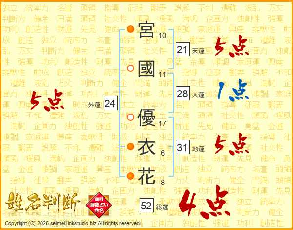 宮國優衣花さんの総運は52画の4点!