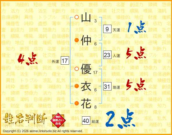 山仲優衣花さんの総運は40画の2点!