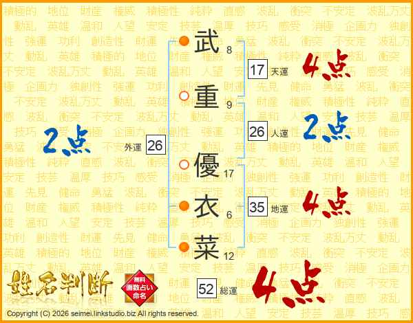 武重優衣菜さんの総運は52画の4点!