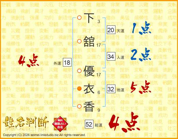 下舘優衣香さんの総運は52画の4点!