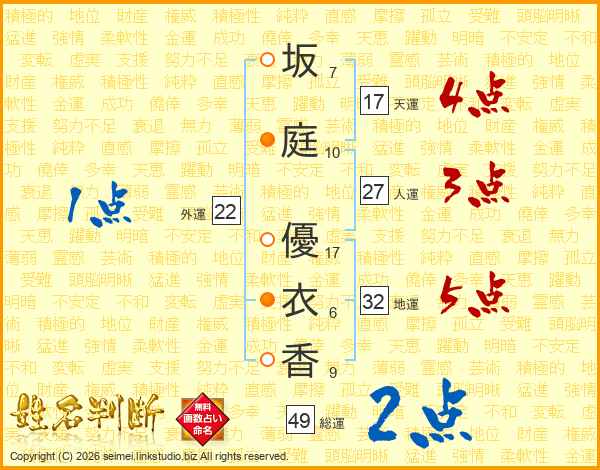 坂庭優衣香さんの天運は17画の4点!