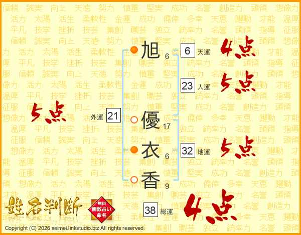 旭優衣香さんの総運は38画の4点!