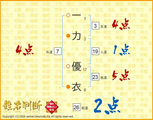 一力優衣さんの総運は26画の2点!