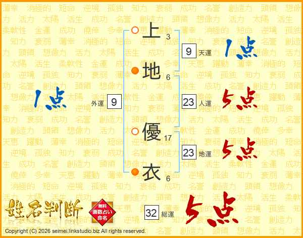 上地優衣さんの総運は32画の5点!